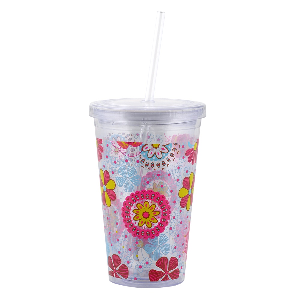 16 oz Double Wall Acrylic Tumbler With Straw