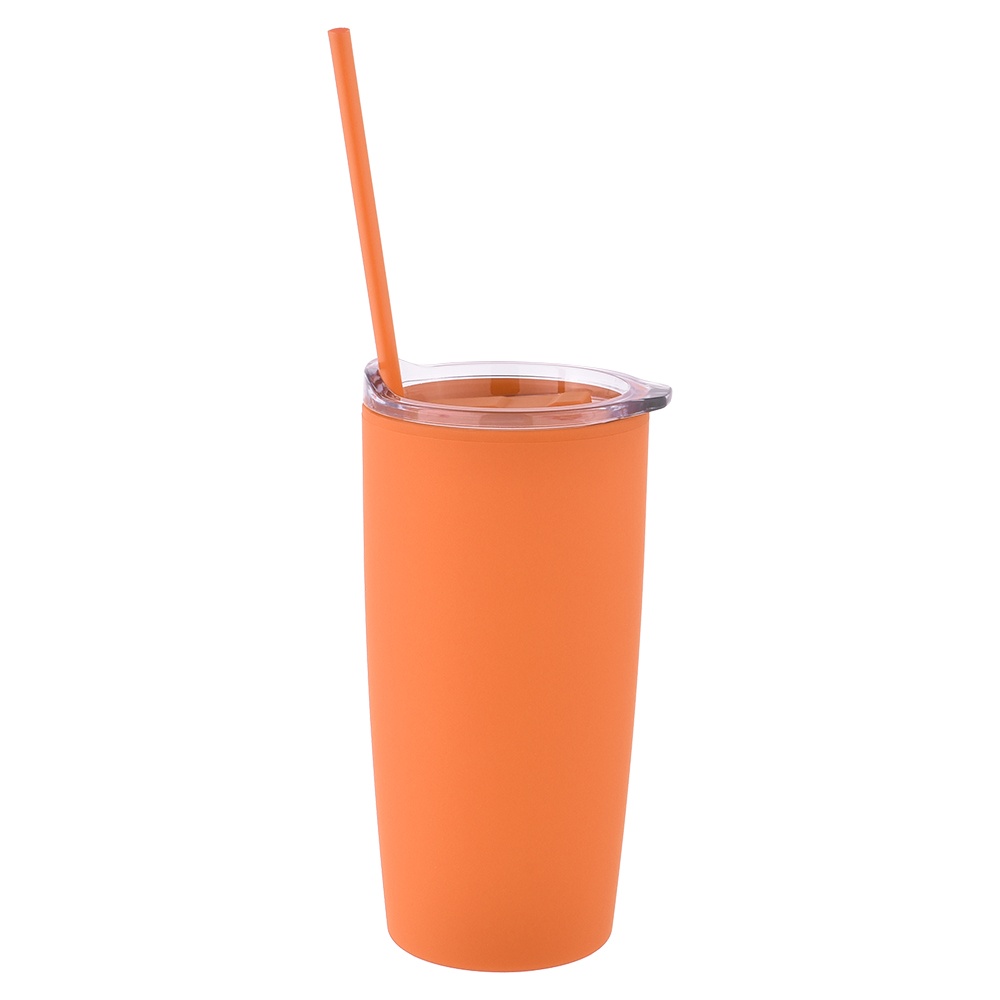 20oz. Double Wall Rubberized Acrylic Tumbler With Straw