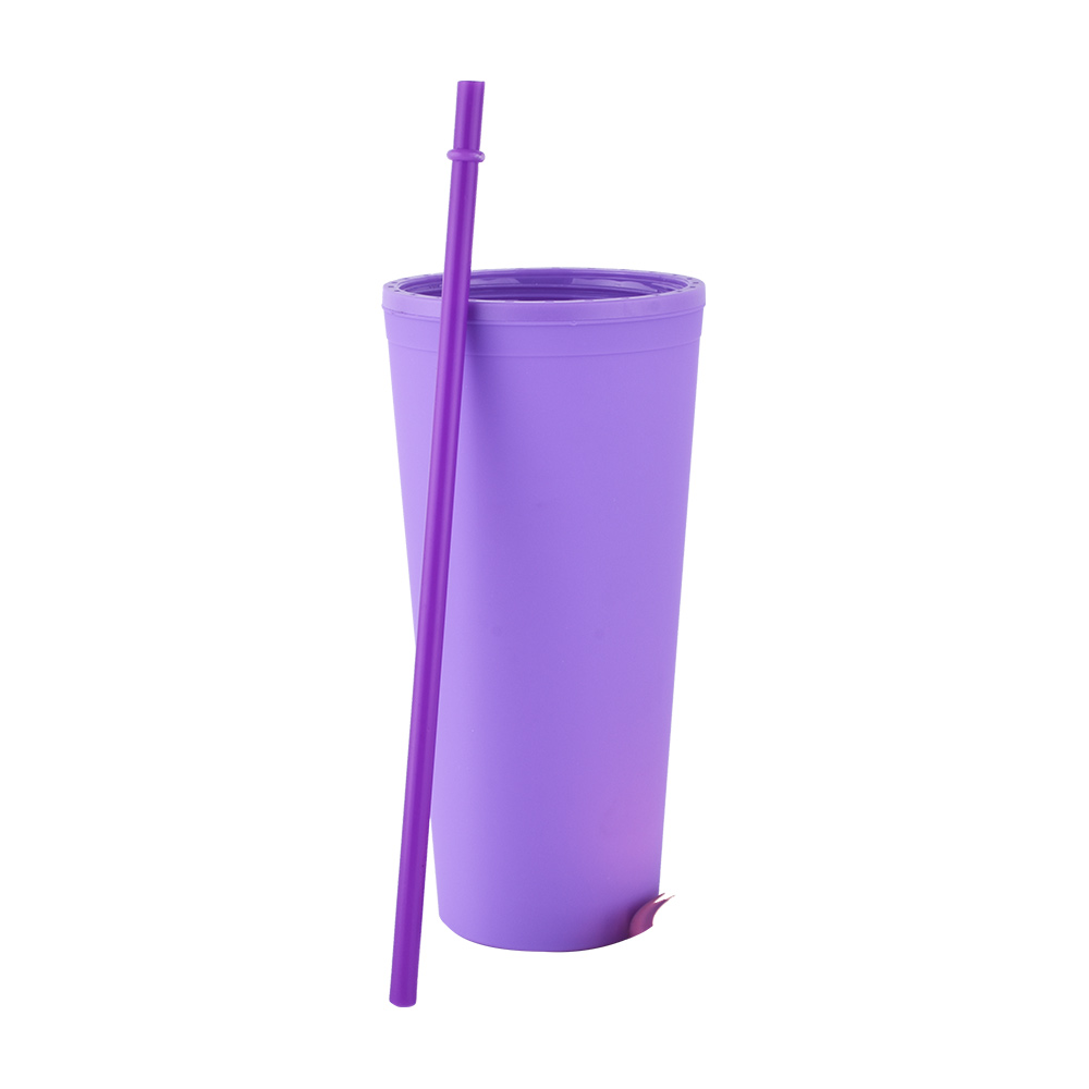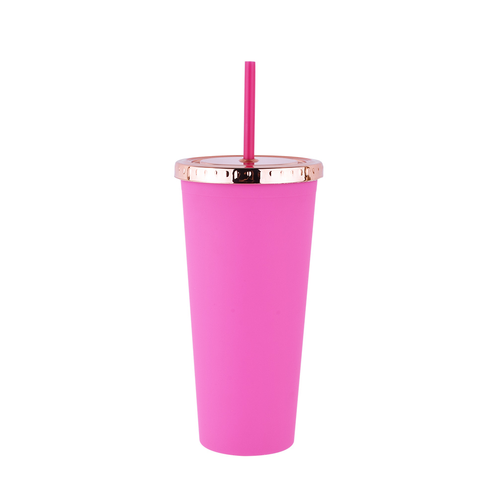 24 oz Rubberized Double Wall Plastic Tumbler With UV Coated Lid