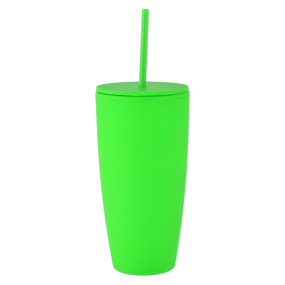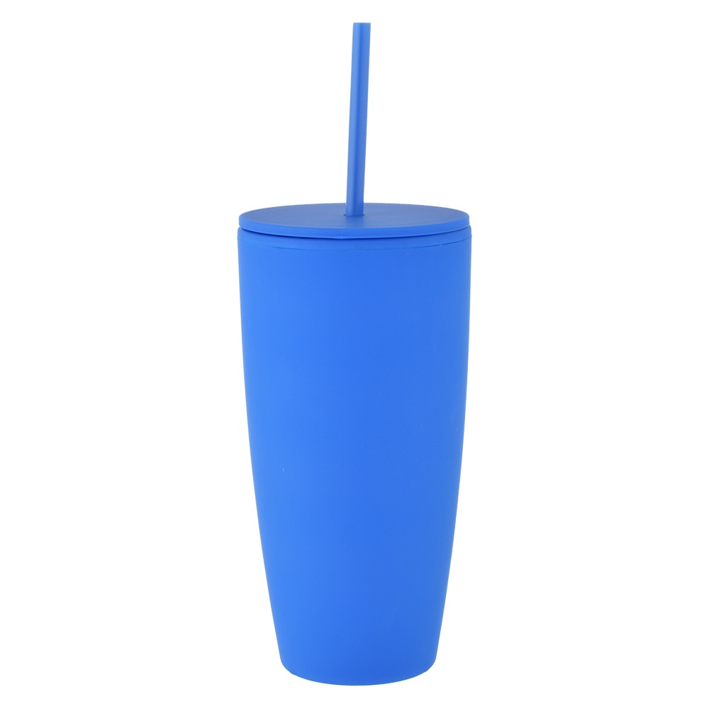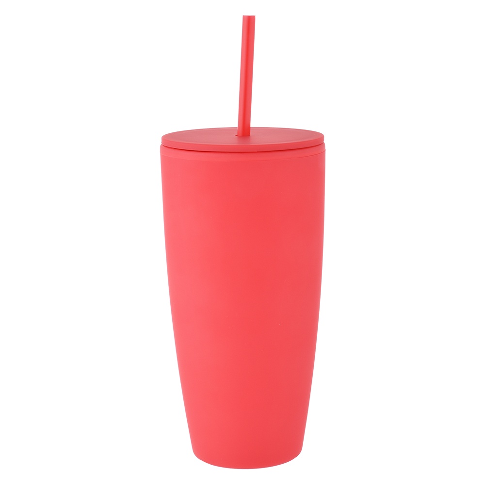 28 oz Rubberized Double Wall Plastic Tumbler With Straw